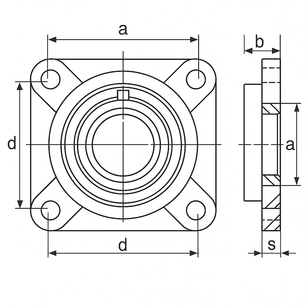 Los soportes UCF son unidades de rodamiento con brida cuadrada de 4 tornillos, diseñadas para alojar un rodamiento autoalineable tipo UC. Se utilizan ampliamente en maquinaria industrial, agrícola y transportes.
